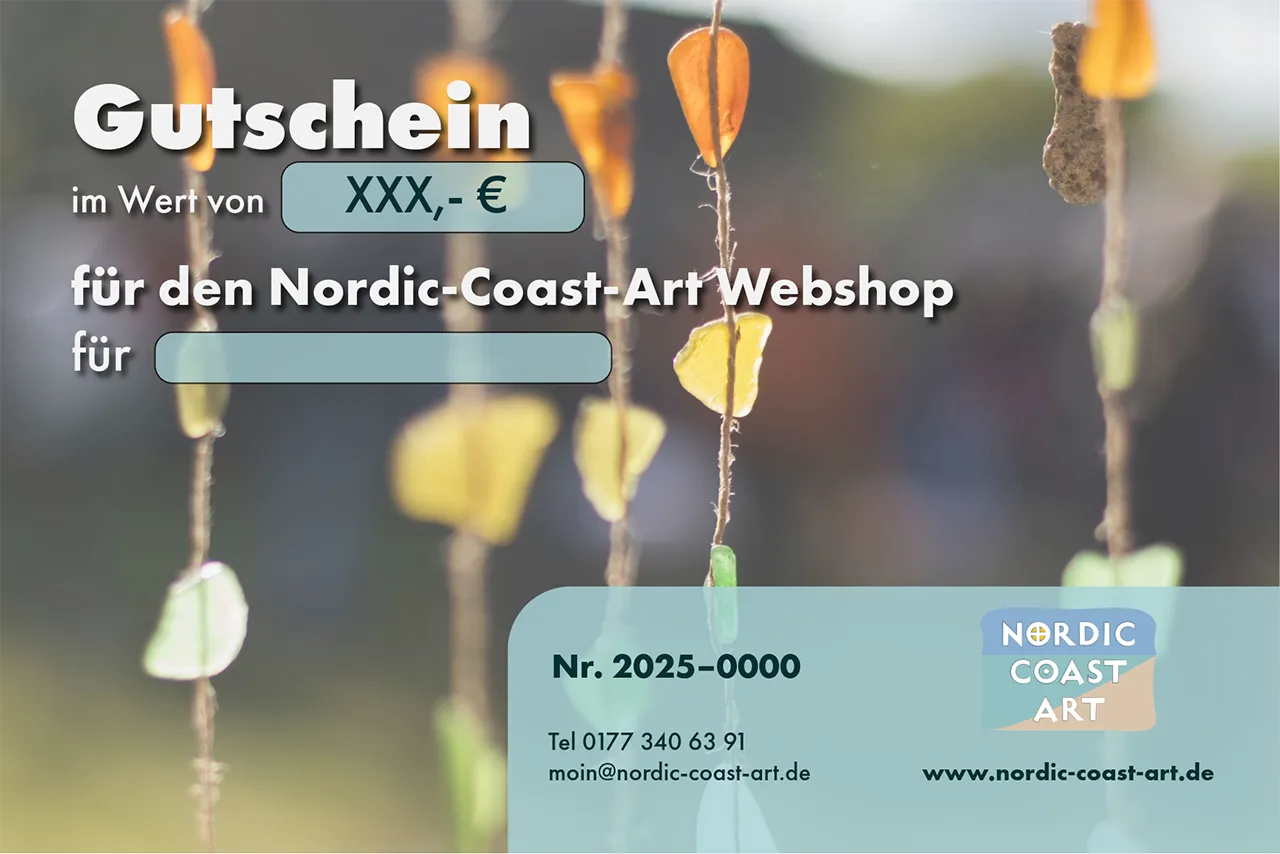 Unsere handgefertigten Unikate aus Seeglas, Treibholz und Hühnergöttern sind immer etwas Besonderes – jedes Stück ist ein echtes Unikat und trägt die Spuren von Wind, Wasser und Zeit. Mit einem Gutschein verschenkst du die Möglichkeit, genau das Lieblingsstück zu finden, das das Meer am schönsten spürbar macht.